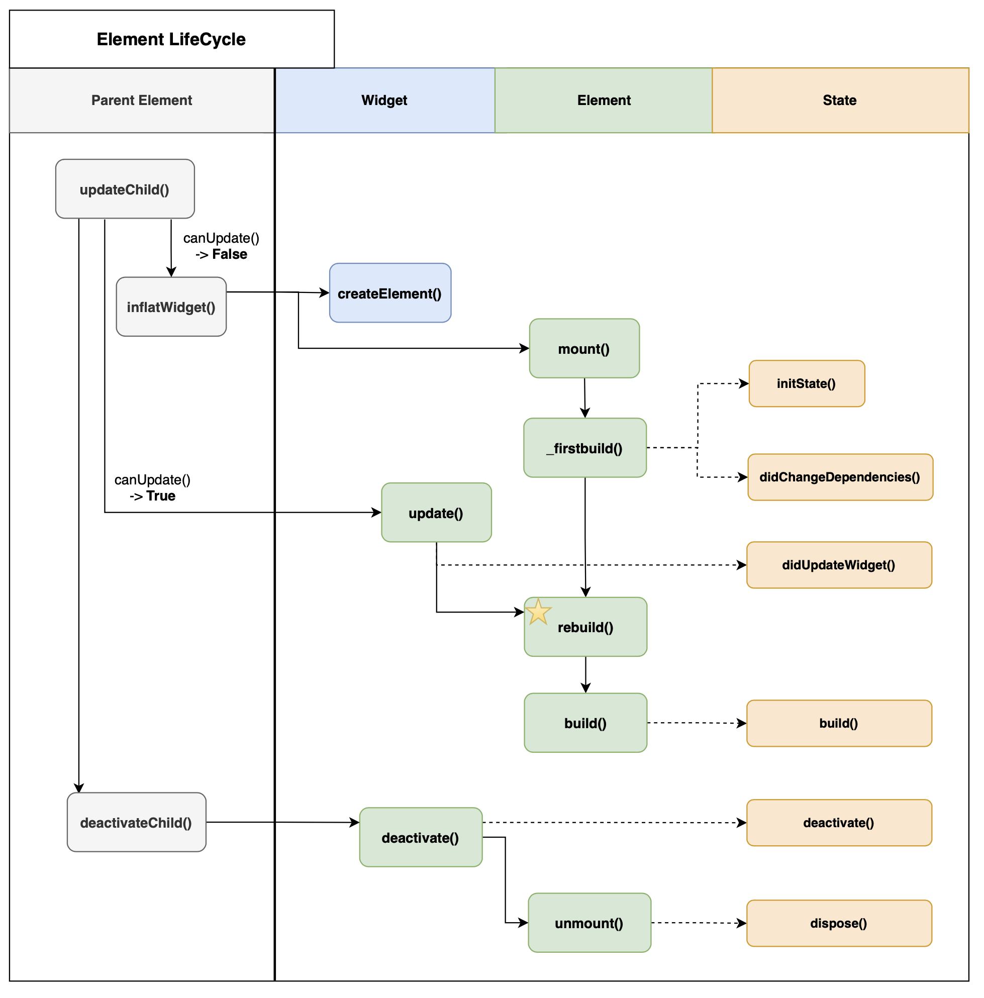 Element LifeCycle과 State LifeCycle을 연결시켜 보면 Element와 State의 관계를 좀더 명확하게 알수 있다.